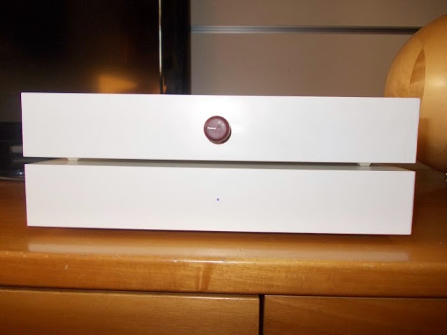 The passive preamplifier, a simple 2 x 20 Kohm stereo potentiometer to regulate the music volume, is fit inside another 30 cm emptied Lack shelf.